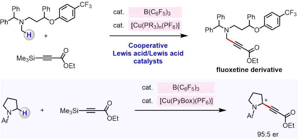[34] Chan, J. Z.;‡ Yesilcimen, A.;‡ Cao, M.; Zhang, Y.; Zhang, B.; Wasa, M. Direct Conversion of N-Alkylamines to N-Propargylamines Through C–H Activation Promoted by Lewis Acid/Organocopper Catalysis: Application to Late-Stage Functionalization of Bioactive Molecules. J. Am. Chem. Soc. 2020, 142, 16493-16505. [Link]