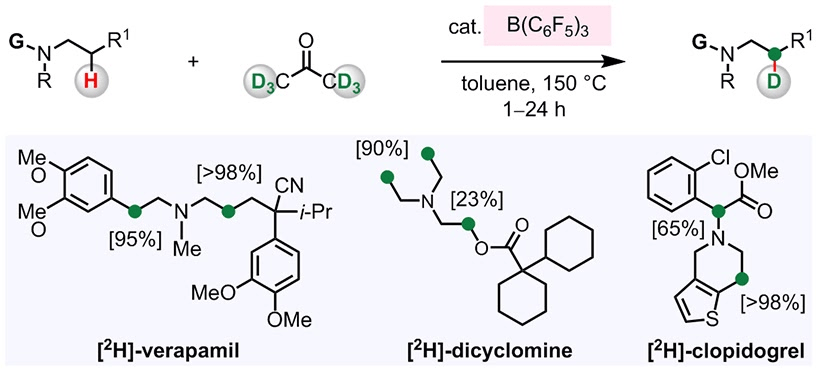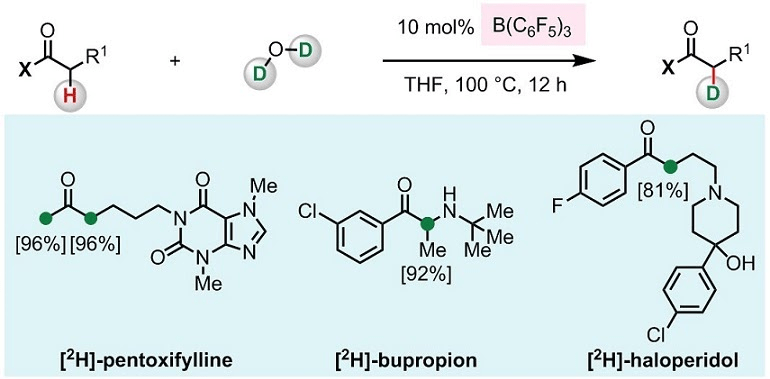 [32] Chang, Y.; Myers. T.; Wasa, M. B(C6F5)3-Catalyzed alpha-Deuteration of Bioactive Carbonyl Compounds with D2O. Adv. Synth. Catal. 2020, 362, 360-364. [Link]