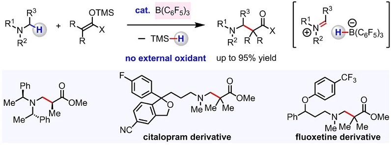[29] Chan, J. Z.‡; Chan, Y.‡; Wasa, M. B(C6F5)3-Catalyzed C–H Alkylation of N-Alkylamines Using Silicon Enolates without External Oxidant. Org. Lett. 2019, 21, 984. [Link]