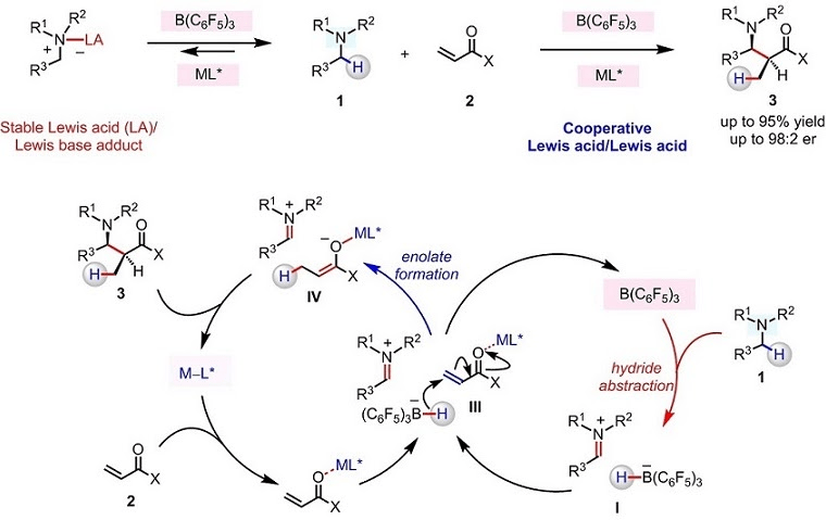 [35] Chang, Y.;‡ Cao, M.;‡ Chang, J. Z.; Zhao, Y.; Wang, Y.; Wasa, M. Enantioselective Synthesis of N-Alkylamines through beta-Amino C–H Functionalization Promoted by Cooperative Actions of B(C6F5)3 and a Chiral Lewis Acid Co-Catalyst. J. Am. Chem. Soc. 2021, 143, 2441-2455. [Link]