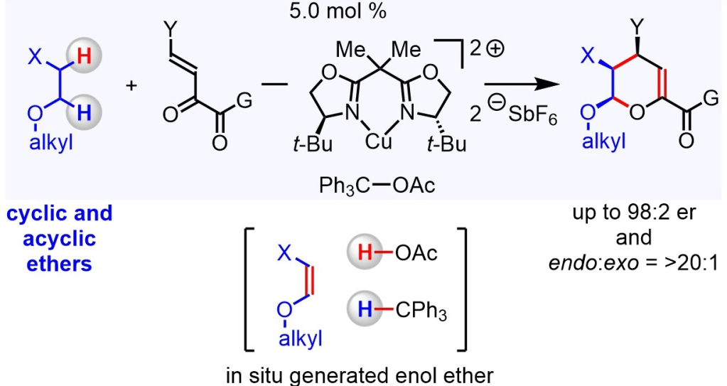 [37] Yesilcimen, A.;‡ Jiang, N.;‡ Gottlieb, F.; Wasa, M. Enantioselective Organocopper-Catalyzed Hetero Diels–Alder Reaction through in Situ Oxidation of Ethers into Enol Ethers. J. Am. Chem. Soc. 2022, 144, 6173-6179. [Link]